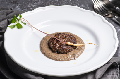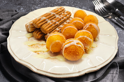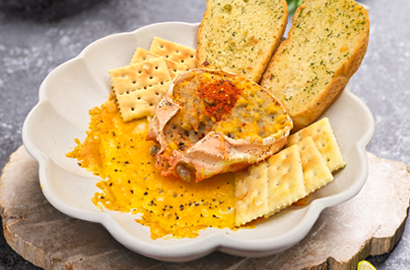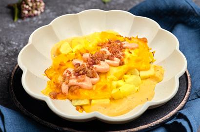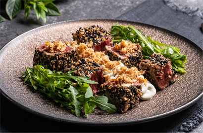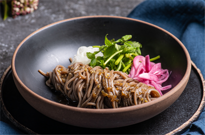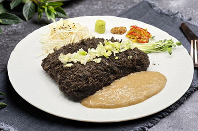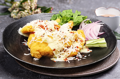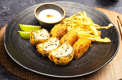 튀긴 양파, 유자폰즈소스를 함께 곁들인 메뉴